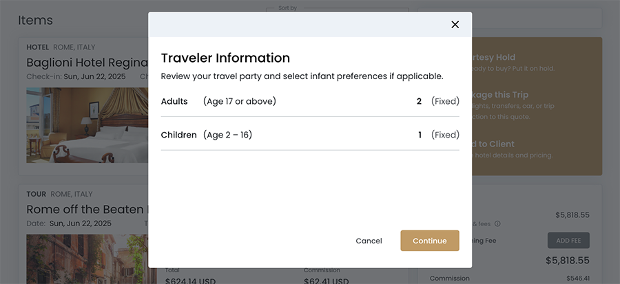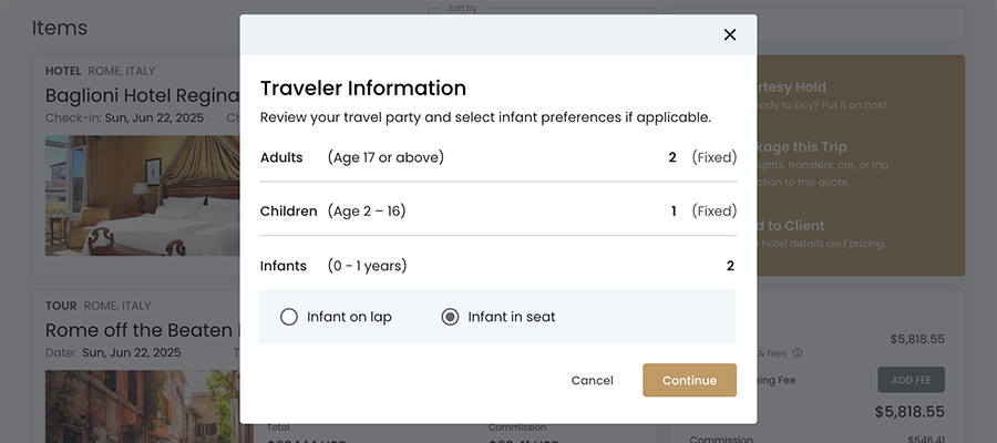 - It allows users to specify whether infants will be traveling as 'infant on lap' or 'infant in seat'.