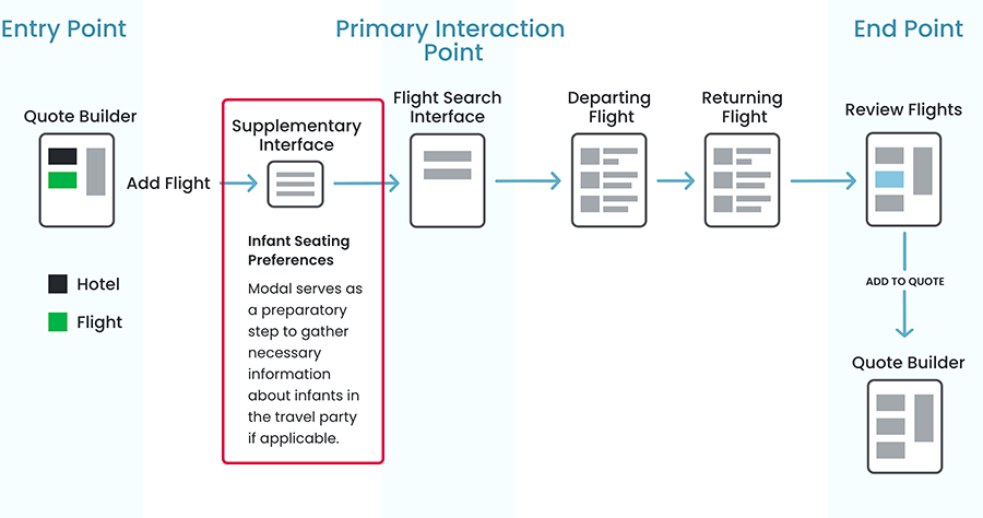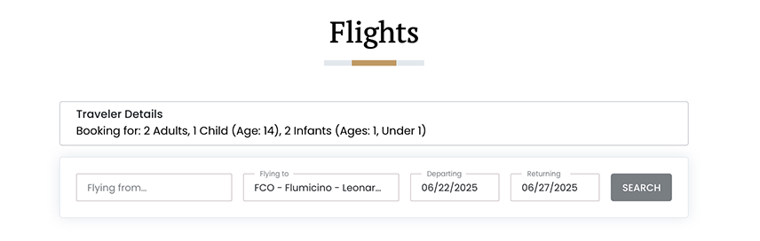 To ensure a seamless start to the users flight booking journey, we will focus on the users essential inputs, like departure and destination cities, and travel dates. In addition, the traveler display will convey the passenger details.