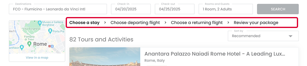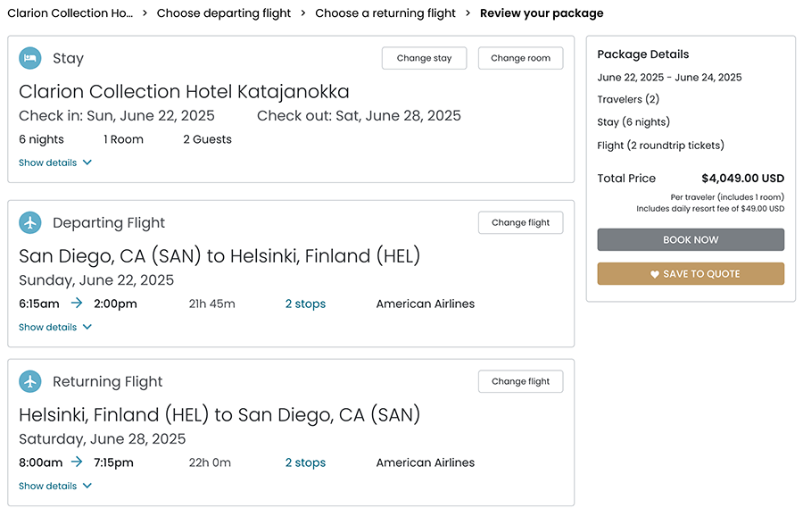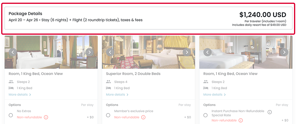 Convey the importance of showing the package rate throughout the booking process by implementing a persistent "package summary" and "differential pricing" that remains visible throughout the booking process.