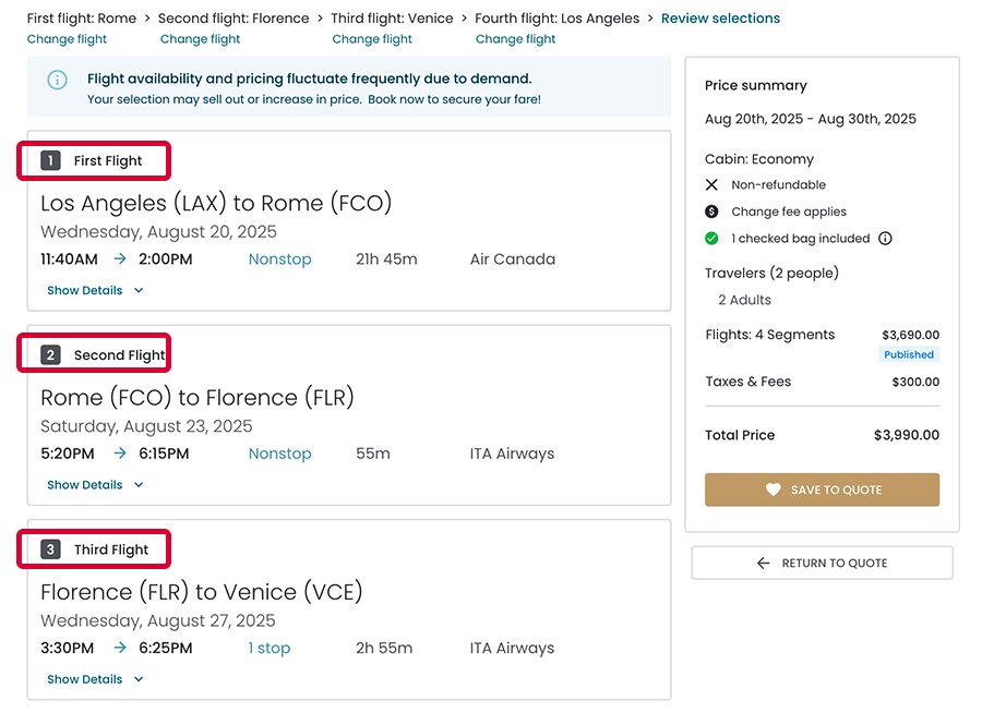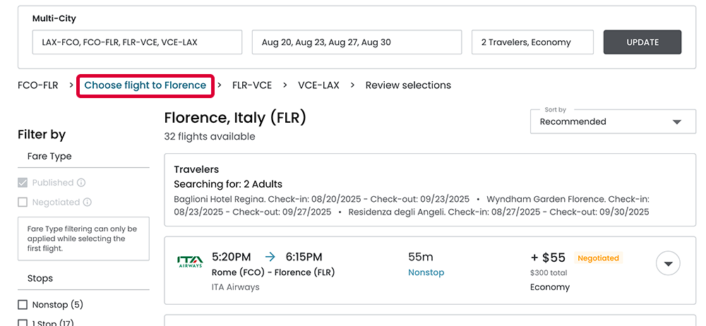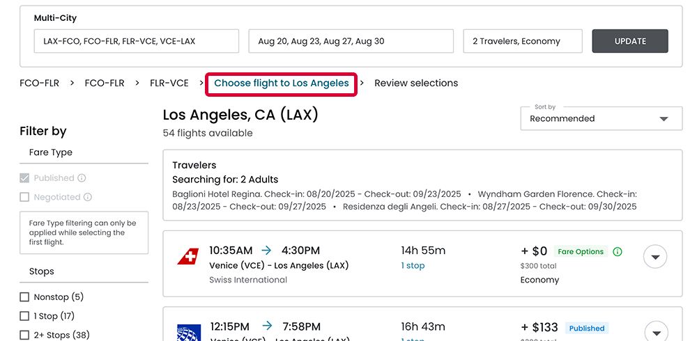- Customize each leg to match traveler preferences