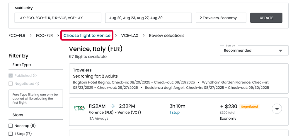The new interface will enable users to build multi‐flight journeys tailored to clients who are visiting multiple destinations in a seamless workflow. By giving advisors precise control over each segment of the journey, the interface will enhances productivity and improve the client experience.