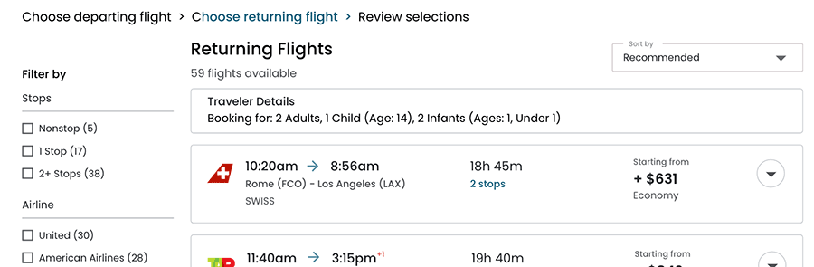 By revealing critical details such as layover durations, stop locations, and fare options, the expanded view builds trust and ensures users feel confident in their selection.