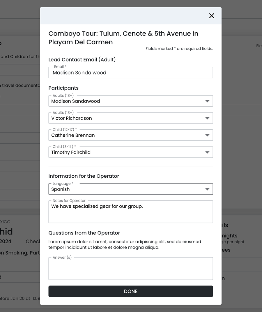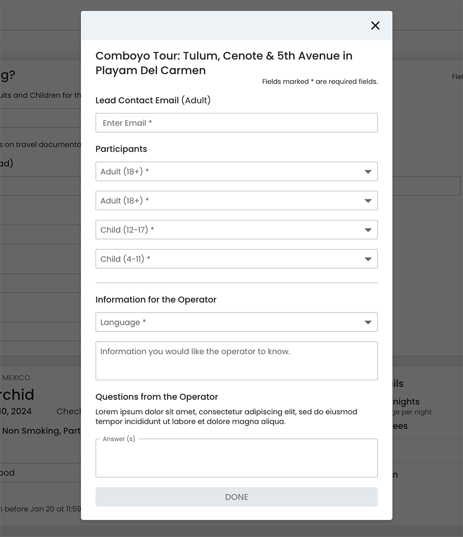 After user enters required information, they will click on the DONE button. The Tour card will display the success state.