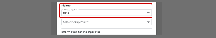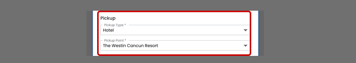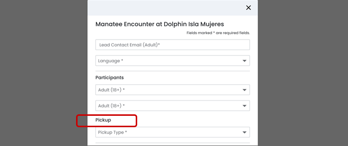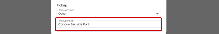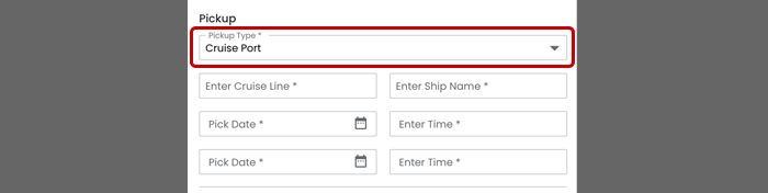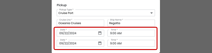 Dialog with Pickup Type field selector will display when shore excursion applies to the tour.