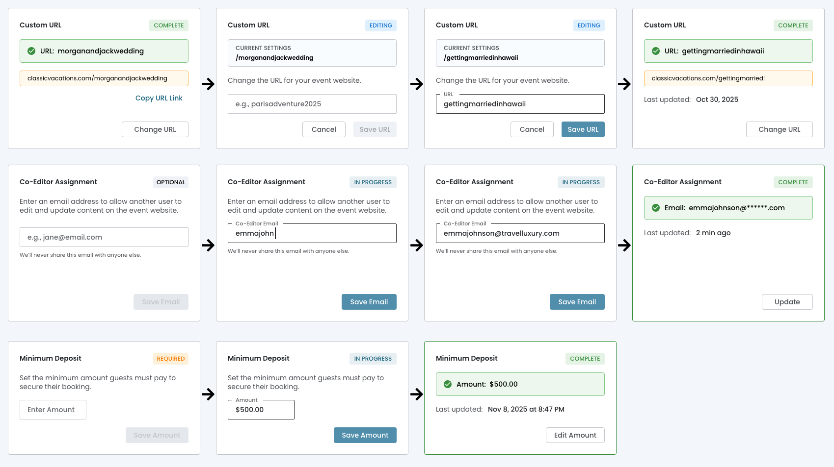 - "Change URL", "Save Email", "Edit Amount" are embedded
