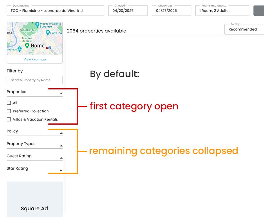 Update the filter UI to incorporate categories, allowing for a more streamlined and user‐friendly layout that supports ad visibility in the vertical sidebar.