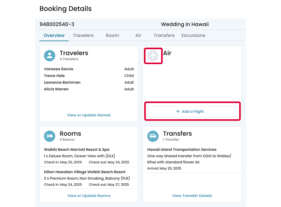 Booking Details ‐ Air