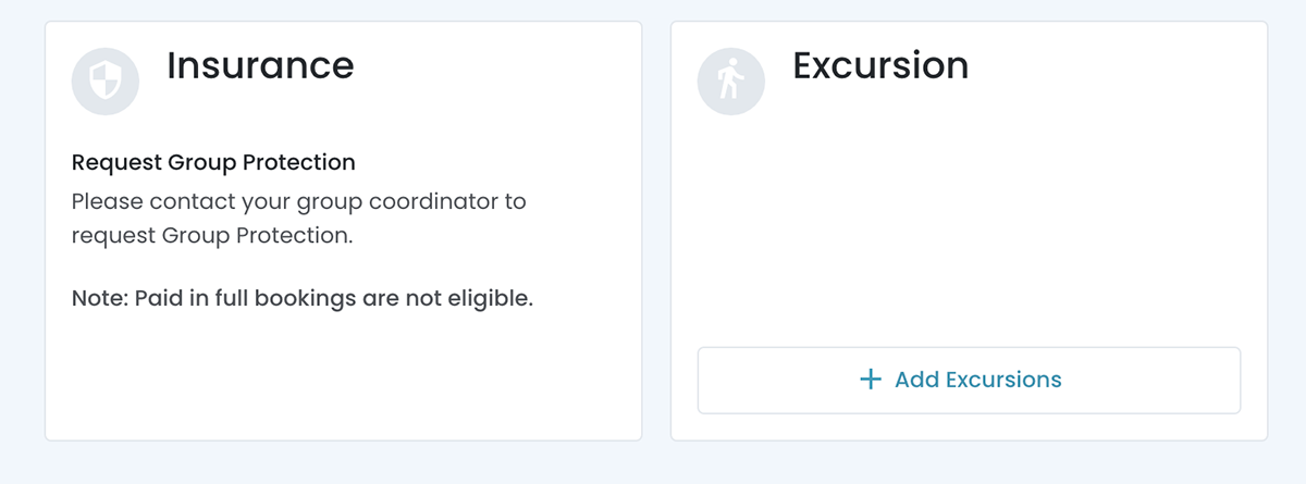 These following shows cards that do not contain data. For insurance, the user will need to contact Classic Vacations.