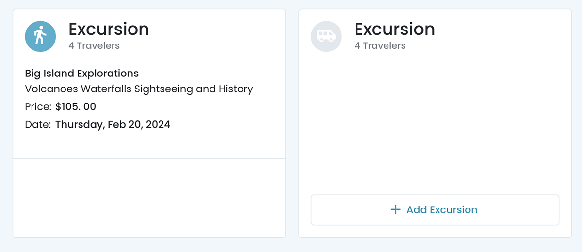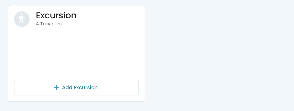 User will click on the 'Add Excursion' button and a modal will appear with tours for the user to select.