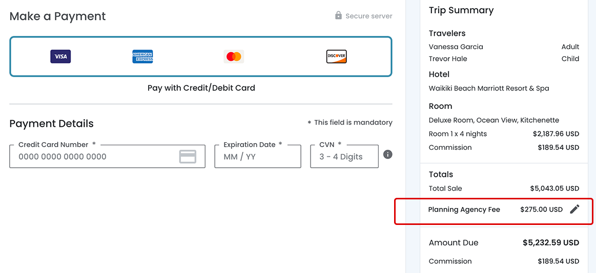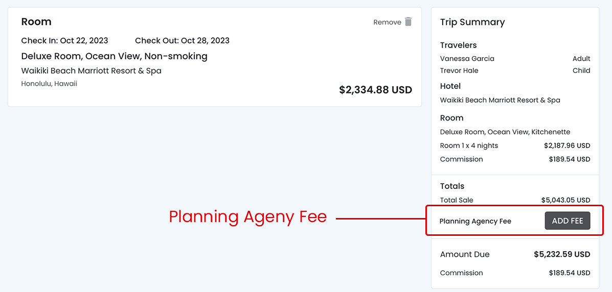 We need to add the Planning Agency Fee to the side summary. In the case of the checkout, the fee has been determined in Review page.