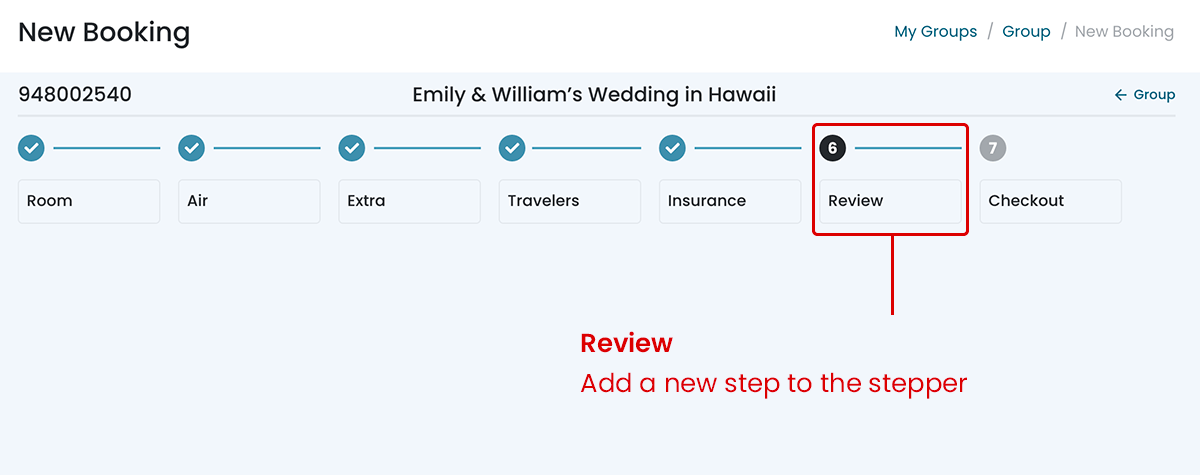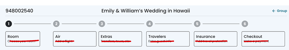 Enabling travel advisors to book a room for a new guest or guests within a group.