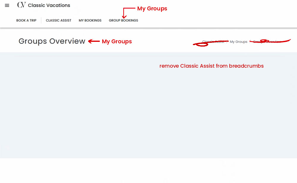 - Single‐row navigation Replace 'Group Bookings' with 'My Groups'
