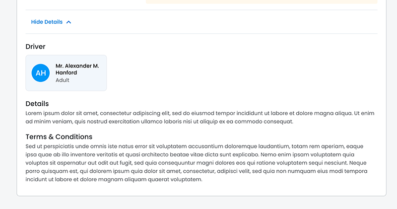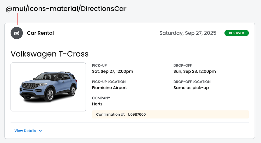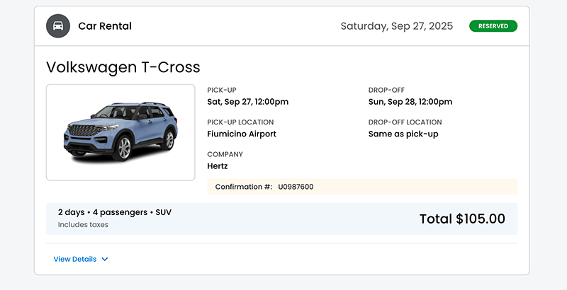 The Car Rental card simplifies the travel experience by providing an card to access transportation information.