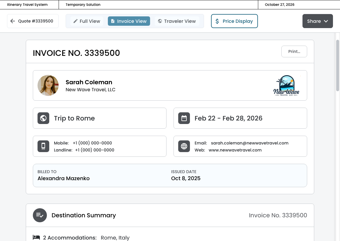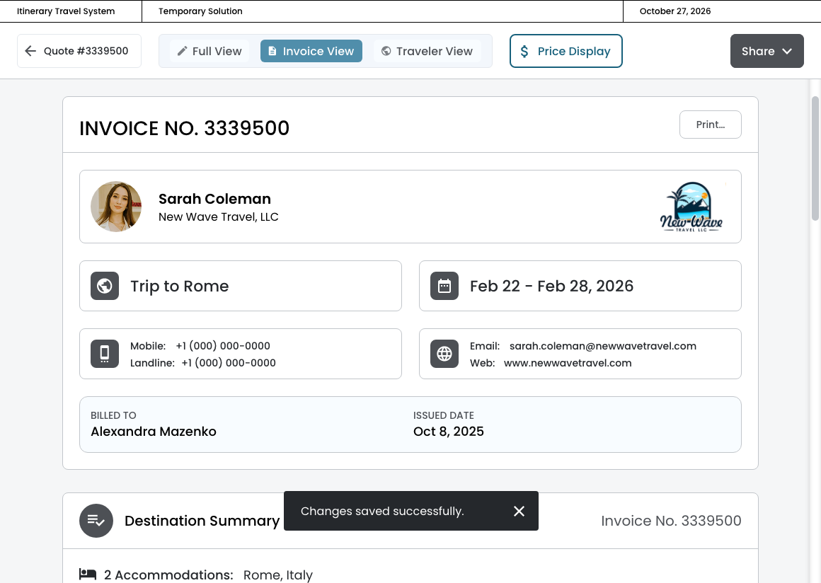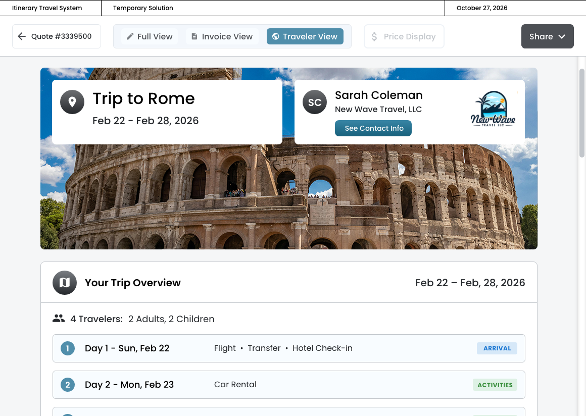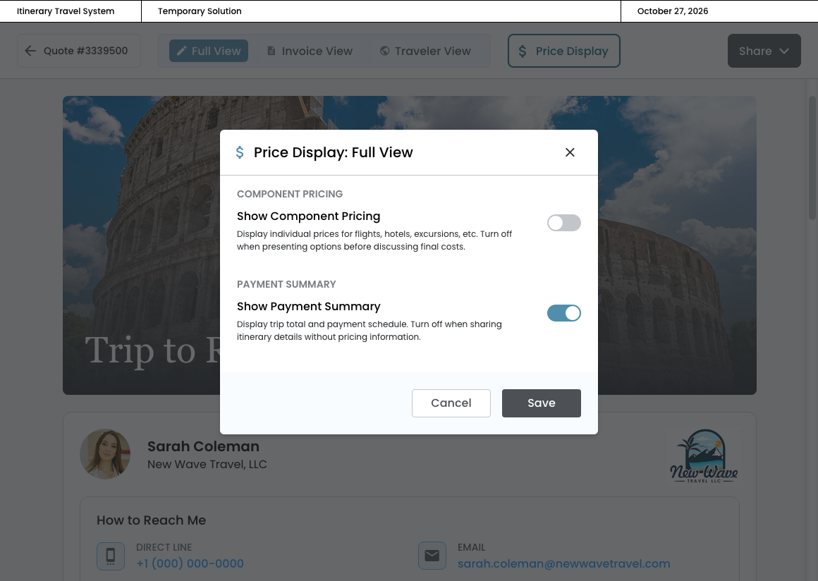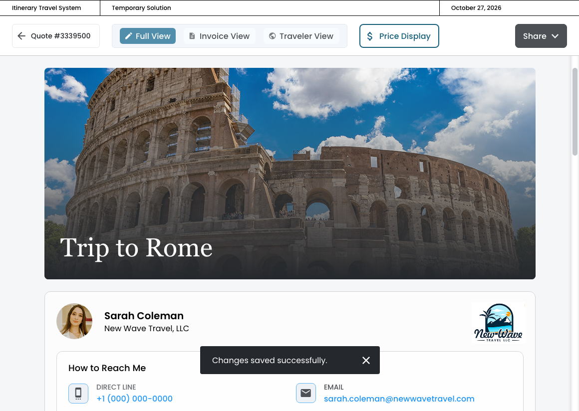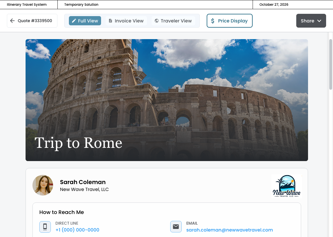 - Advisor enters the Preview & Share interface from the Quote Builder