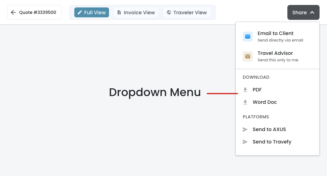 - Full View (pencil icon) ‐ "Proposal for selling the trip"