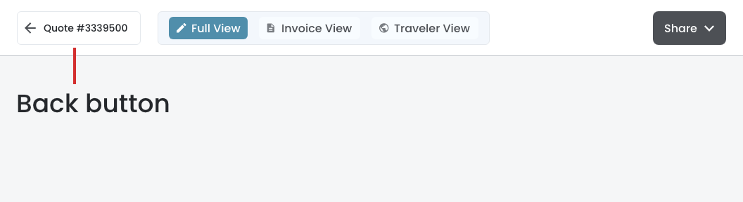 To reduce cognitive load, the quote or booking number should display following the left arrow. This will convey to the user where it (the arrow) goes "back" too. Look at the design to see the hover effect of the arrow and number.