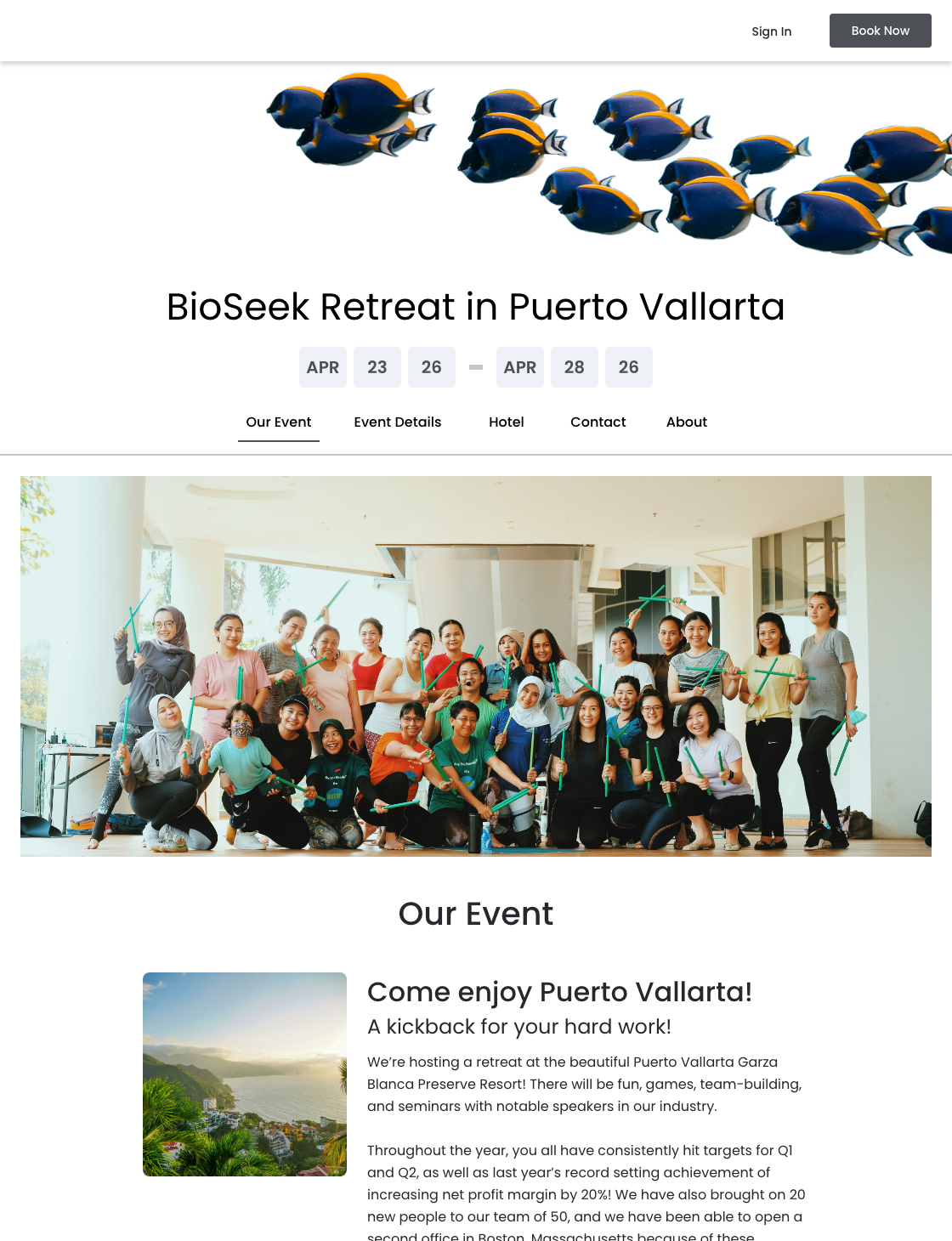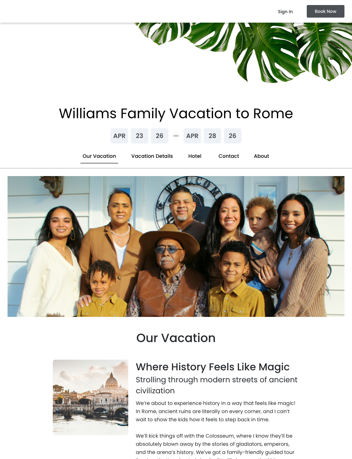 - Itinerary Page: Wedding Events | Vacation Details | Event Details