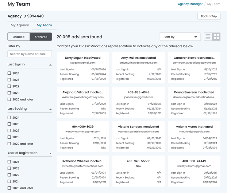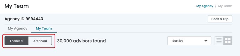When user selects ARCHIVED, they will see the ARCHIVED advisors within that agency.
